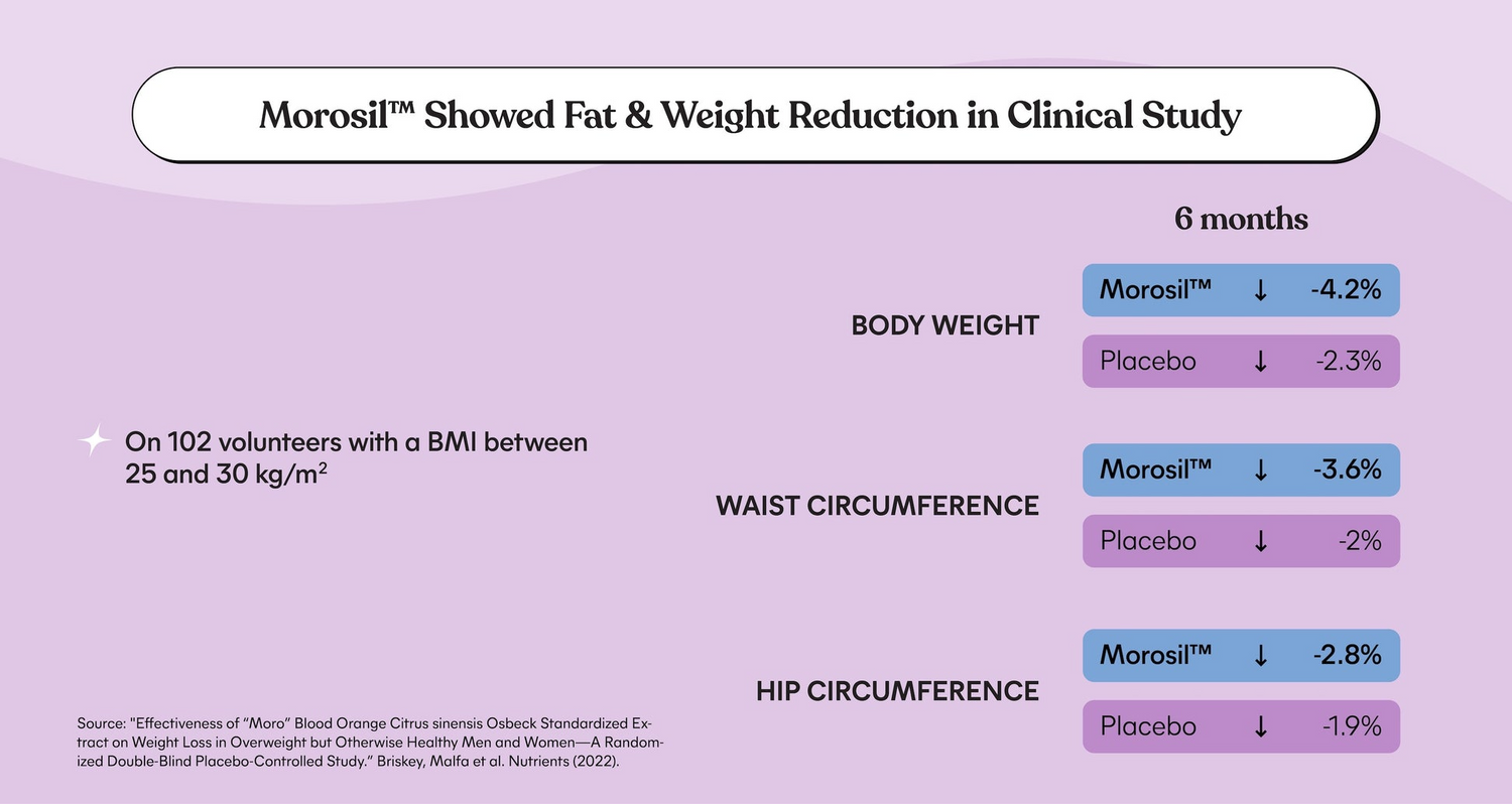 Fight visceral fat, activate metabolism and support healthy weight management with clinically-studied MorosilTM, along with healthy diet and exercise.*